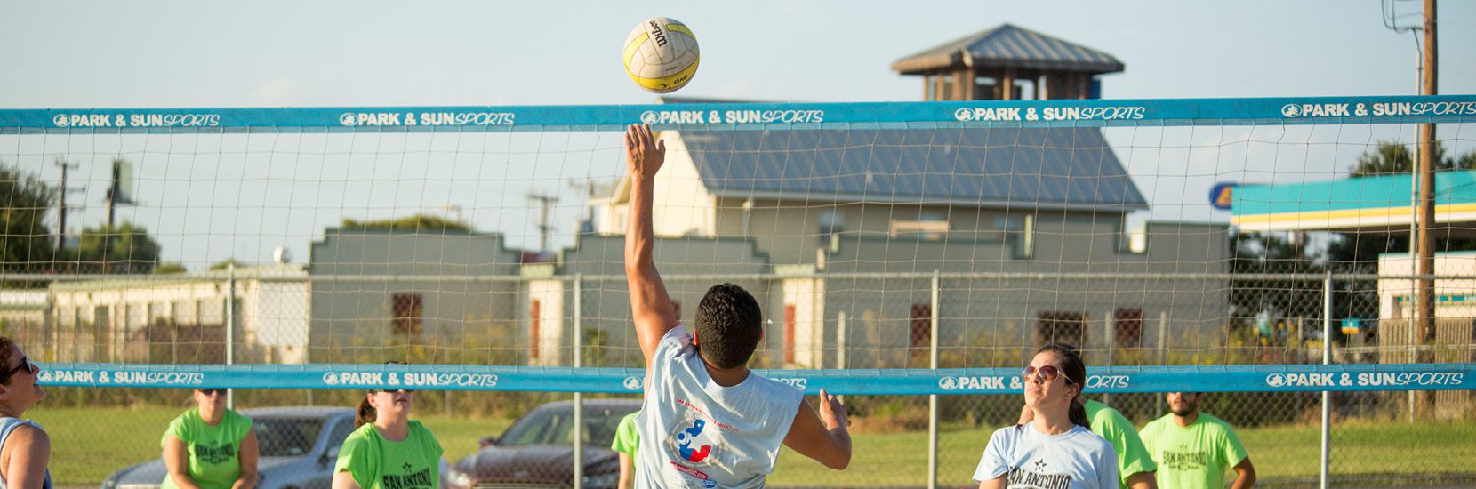 Stay sandy San Antonio! Bump it on the beach with your best buds for a full day of sand volleyball fun in our Sand Volleyball Tournament!